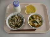 豆入りひじきごはん 卵焼き 豆腐汁 牛乳