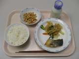 ごはん 魚の西京焼き 野菜のごまだれかけ ぶどう豆 牛乳