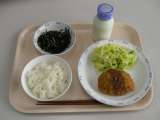 ごはん コロッケ ゆでキャベツ ひじきの煮つけ 牛乳