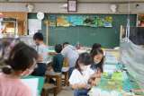 5年生図工「ジャングルの生命」の様子です。友達の作品を鑑賞して工夫を見つけます。...