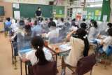 5年生家庭科の様子です。針に糸を通して、縫い方の学習です。まずは糸を通すところか...