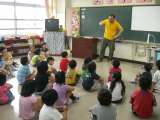 今日は初めての英語活動です。 パワフルなクリス先生と元気いっぱいの子どもた...