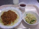 7月4日 スパゲティーミートソース 牛乳 じゃがいものハニーサラダ ...
