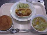 7月10日 黒砂糖パン 牛乳 ミートポテト焼き キャベツスープ スパ...