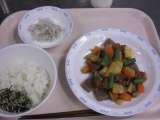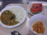 7月11日 夏野菜のカレーライス 牛乳 にんじんサラダ くだもの ...