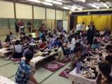 豪華な夕食です。みんな笑顔で、いただきます! 坪井徳明