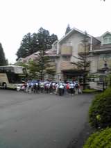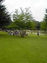 バスの中ではドシャ降りの雨も、昼食場所の大谷川公園では雨も上がり、広い芝生の上で...