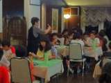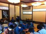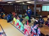着物に着がえて、日光江戸村での体験学習が始まりました。まずは、寺子屋での勉強です...