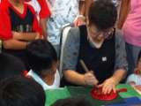 寺子屋体験のあとは、竹とんぼ作りとお手玉作りの体験です。昨夜の日光彫りの体験が活...