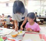 サマースクール「墨で絵を描こう」は、3年生以上を対象に行いました。講師の先生は倉...