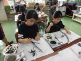 写真1:「墨で絵を描こう」 普段は習字で使う墨と筆を使ってこんなに綺麗な絵が描け...