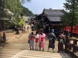 8月2日(金)3日目 江戸村 両国橋で記念撮影。着物での活動はちょっと暑いですね...