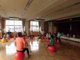 「バランスボール広場」の講座の様子です。大きなバランスボールに最初は戸惑いながら...