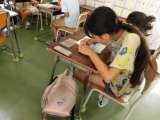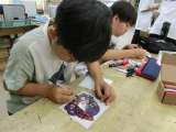 それぞれ好きなイラストや絵柄を選んで、プラ板に書き写していきました。教室がシーン...