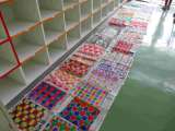 ダイアモンドキーホルダーづくりはキラキラしたビーズと色ごとにシートに貼りつけキー...