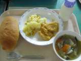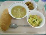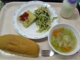 9月25日(火)ショートニングパン スペイン風オムレツ 青菜のソテー 野菜スープ