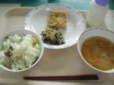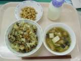 9月24日(月)今日の給食 豚肉とごぼうのごはん よしの汁 ぶどう豆 牛乳