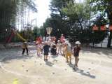 玉入れの様子です。 玉入れ係の年長さんが、玉を配り、残りをかごの周りに散らします...