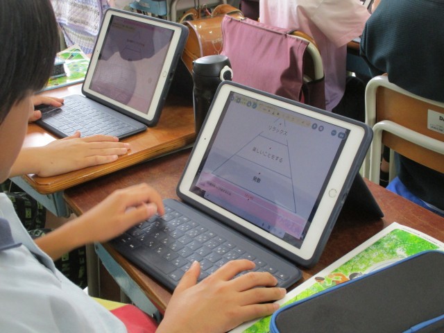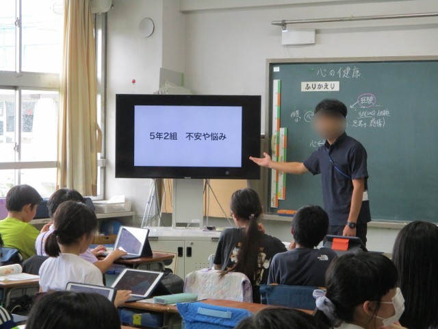 保健「心の健康」の学習です。1学期最後の校内研究授業でした。不安や悩みに対する対処法について考え、交流しました。