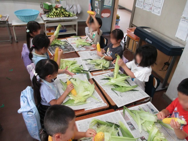 トウモロコシの皮むき【1年生】 公開日 2025/07/17 更新日 2025/07/17 今日のできごと 今日の給食のトウモロコシを、1年生が皮むきのお手伝いをしました。皮やヒゲを丁寧に剥かれたトウモロコシは、給食室で調理され、全校児童の給食としていただきます。 いいね(0)