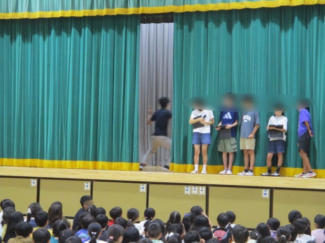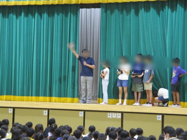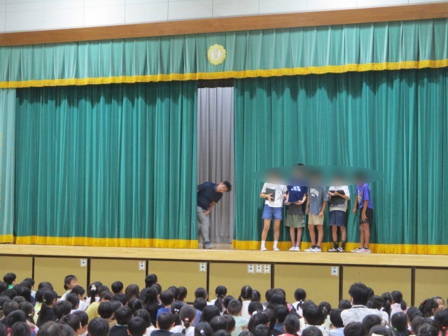 児童集会 公開日 2025/09/16 更新日 2025/09/16 今日のできごと 今朝の児童集会は全校児童が体育館に集まって、「先生当てクイズ」を行いました。ステージ上を通過した先生を見て、集会委員さんの出したヒントを聞いて当てていきます。とても盛り上がりました。 いいね(0)