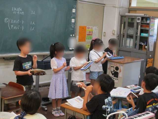 音楽【2年生】 公開日 2025/09/26 更新日 2025/09/26 今日のできごと 「山のポルカ」をグループごとに楽器分担を決めて練習しました。いくつかのグループがみんなの前で発表しました。聴いているお友達から、たくさん褒めてもらいました。 いいね(0)