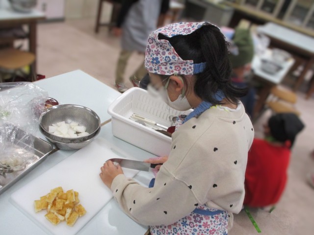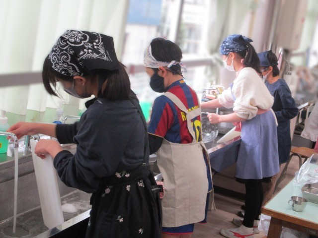 家庭科【5年生】 公開日 2025/12/11 更新日 2025/12/11 今日のできごと 調理実習です。煮干しから出汁を取り、具沢山の味噌汁を作りました。調理しながら洗い物も並行して進め、グループで協力しながら進めていました。 いいね(0)