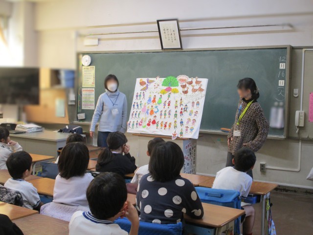 経堂小の読み聞かせボランティア「ありのまま」の皆さんによる読み聞かせです。紙芝居や手遊び歌、一緒に歌を歌いながらのパネルシアターなど、季節に合わせた楽しいお話を聞かせていただきました。