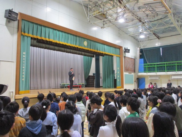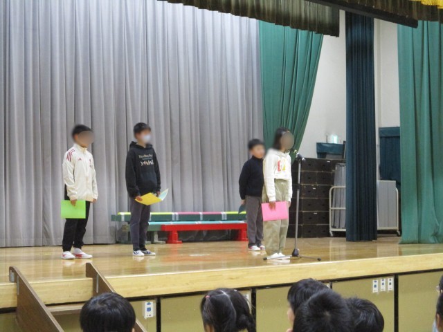 3学期始業式 公開日 2026/01/08 更新日 2026/01/08 今日のできごと 3学期が始まりました。大きな事故の報告もなく、無事に始業式を迎えられ何よりです。児童代表の言葉は5年生でした。新年の抱負を立派に発表しました。 いいね(0)