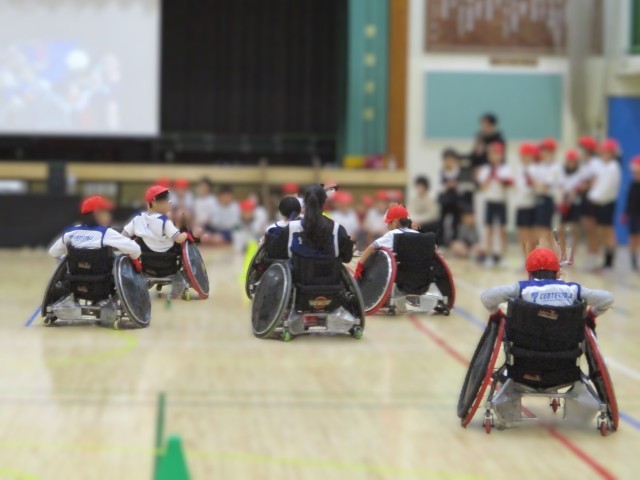 パラスポーツ体験【4年生】 公開日 2026/01/19 更新日 2026/01/19 今日のできごと 東京都教育員会による「笑顔と学びぼ体験プロジェクト」で、パラアスリートの方にご来校いただき、車いすラグビーの体験を行いました。4年生はこれまで、総合的な学習の時間で福祉について学んできましたが、パラアスリートの方と直接的な交流を通し、楽しみながら学ぶことができました。 いいね(0)