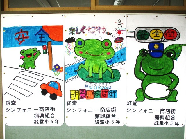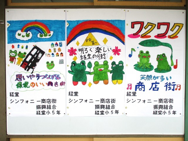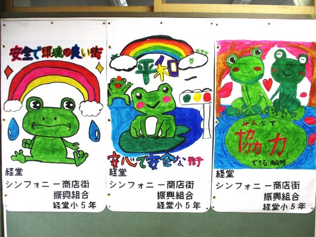 総合的な学習の時間【5年生】 公開日 2026/02/27 更新日 2026/02/27 今日のできごと 経堂小では、毎年5年生が隣接するシンフォニー商店街と連携し、タペストリーを作っています。商店街の人たちの思いや願いを共有し、シンフォニー商店街のシンボルであるカエルをキャラクターにして描きました。完成したタペストリーは、商店街に飾られます。お楽しみに! いいね(0)