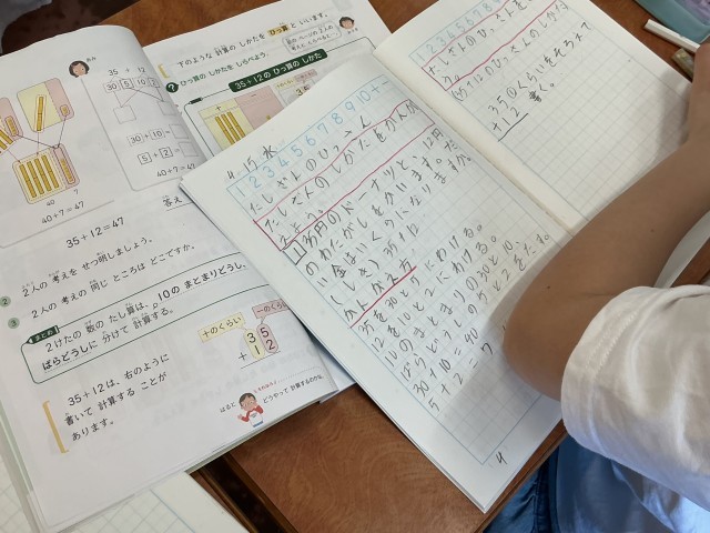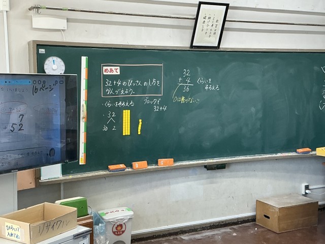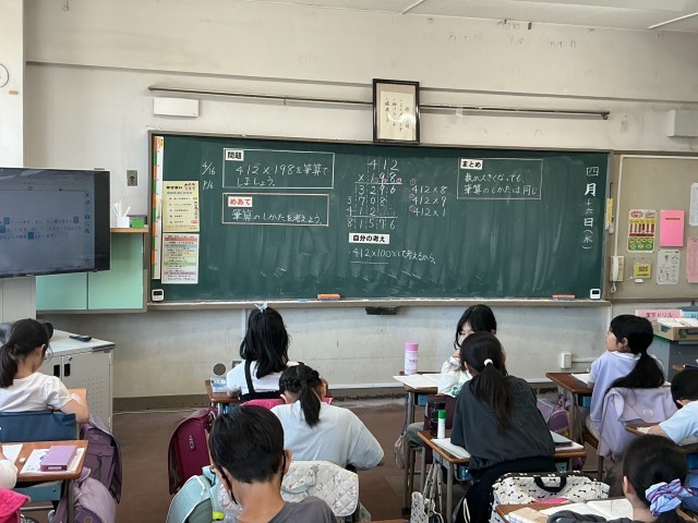 今日は2年生も3年生も4年生も算数の学習で,筆算の仕方を考える内容でした。