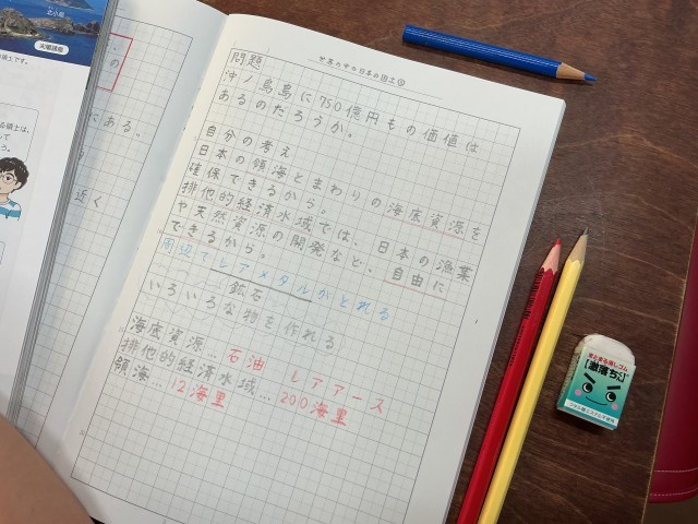 排他的経済水域については今までも学習内容でしたが,子供からはレアアースについての意見もありました。
