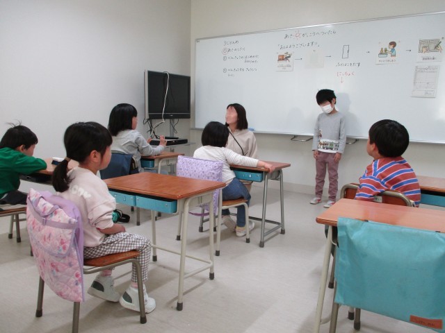 わかば学級の1・2年生のグループです。2年生が見本になってお手本を示し、日直のお仕事について確認しました。