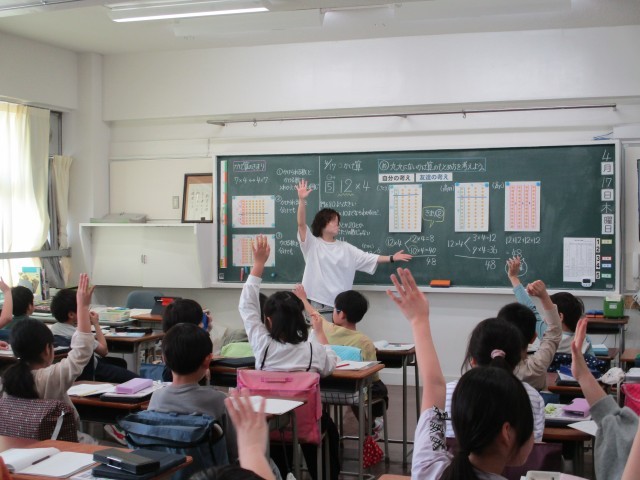 算数【3年生】 公開日 2025/04/17 更新日 2025/04/17 今日のできごと 今日の学習のめあては「九九にないかけ算の求め方を考えよう」です。2年生までに学習したかけ算のきまりを使って、12×4の計算の仕方を考えました。 いいね(1)