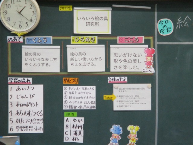 図工【4年生】 公開日 2025/05/09 更新日 2025/05/09 今日のできごと 4年生「いろいろ絵の具研究所」の授業です。「バチック」や「吹き流し」、「ビー玉」、「デカルコマニー」などの技法を学び、オリジナル模様の画用紙を作りました。子どもたちは、教師の実演を見て「わー!すごい!」と歓声を上げ、意欲を高めて自分たちで取り組んでいました。 いいね(0)