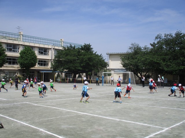 校内研究授業【2年生】 公開日 2025/05/22 更新日 2025/05/22 今日のできごと 「たからとりおに」の学習です。タグを取られずゴールをし、チームでたくさん宝を取るための動きを考えて、みんなで楽しく運動しました。 いいね(1)
