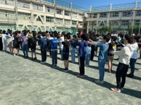 校内研究授業【4年生】 公開日 2025/06/11 更新日 2025/06/11 今日のできごと 体育「キャッチキャッチバレー」の学習です。3対3で、キャッチを2回、3回目で返球するルールです。学習を重ね、ラリーが続くようになり、トスからのアタックに挑戦しています。 いいね(0)