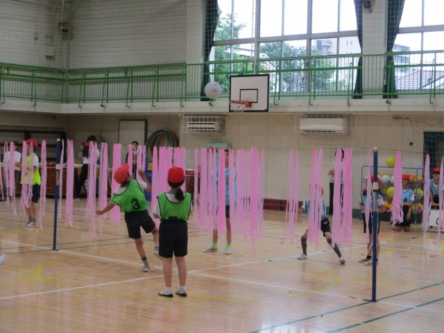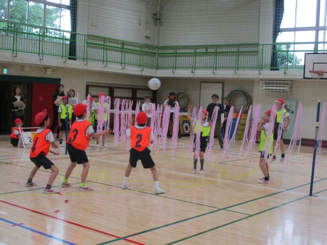 校内研究授業【4年生】 公開日 2025/06/11 更新日 2025/06/11 今日のできごと 体育「キャッチキャッチバレー」の学習です。3対3で、キャッチを2回、3回目で返球するルールです。学習を重ね、ラリーが続くようになり、トスからのアタックに挑戦しています。 いいね(0)