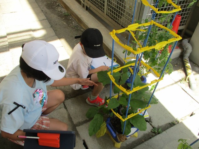 生活科【2年生】 公開日 2025/06/16 更新日 2025/06/16 今日のできごと 生活科で育てている野菜の観察です。春に自分で選んて植えたミニトマトやナス、トウガラシなどが次々と実りました。実った野菜は、その都度おうちに持ち帰ります。 いいね(0)