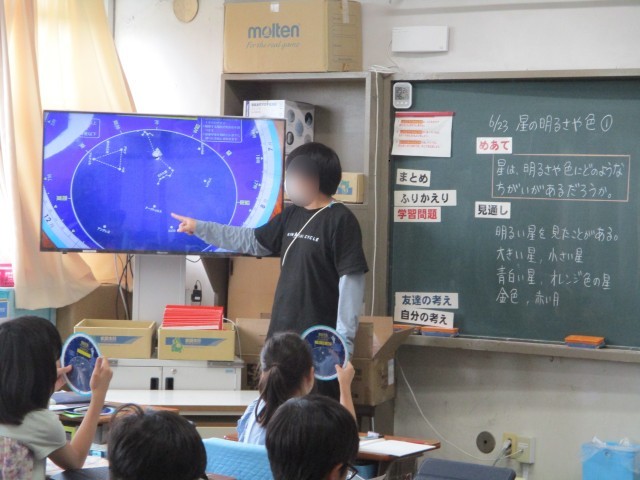「星や月」の単元です。今日は星座早見盤の使い方を学びました。