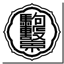 本校の校章は,開校の年に,校名にゆかりのある駒繋神社の八咫鏡(やたのかがみ)を型どり,文字を図案化したものです。