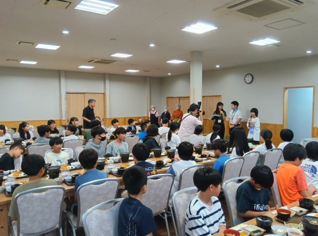 1日目の夕ごはんです。一日の疲れを忘れるように、楽しそうに過ごしていました。以下は児童の感想です。
