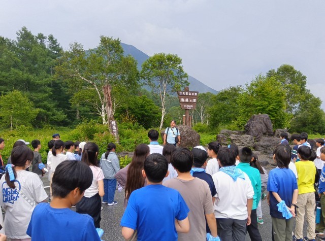 戦場ヶ原から移動し、三本松で集合写真を撮影しました。昨日に引き続いて突然の雨に見舞われ、先にお昼ごはんを食べました。