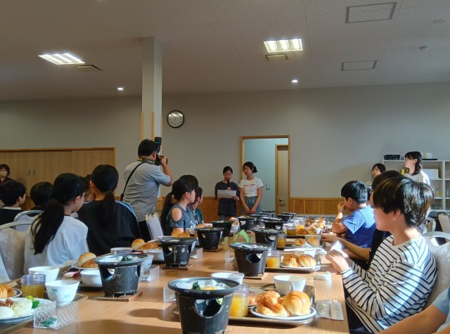 お世話になった旅館の方にお礼をし、大きな声で挨拶をしました。