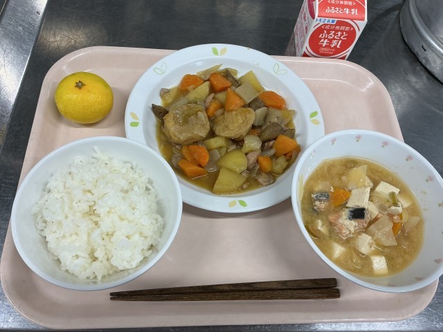 本日の献立 ごはん(有機米) 牛乳 筑前煮 三平汁