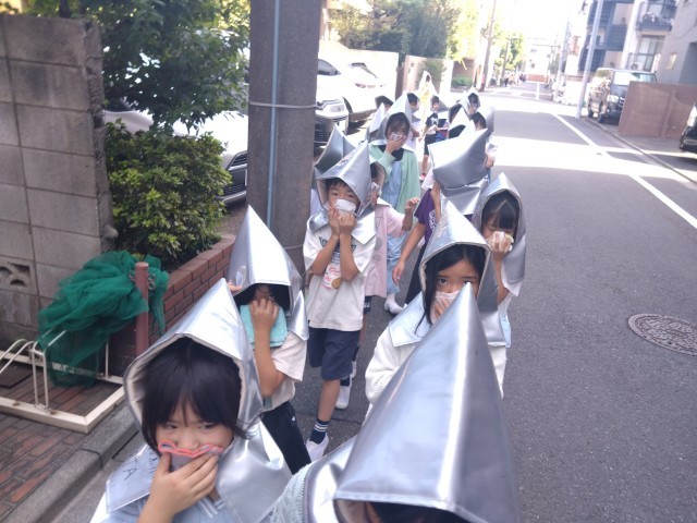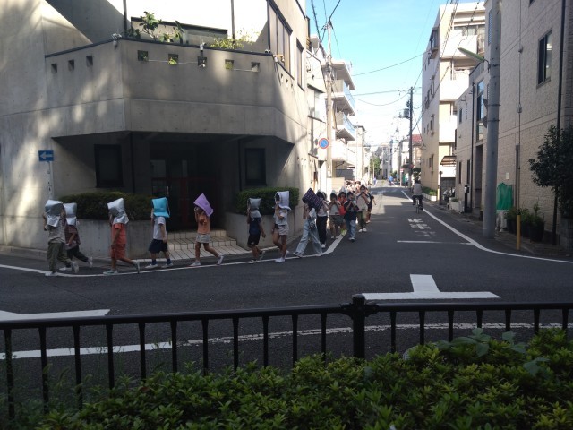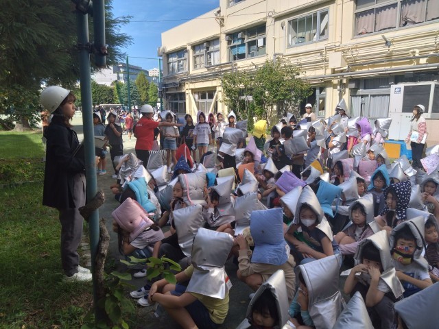 学校は火の手が回ってしまったので、2次避難所に避難する訓練です。