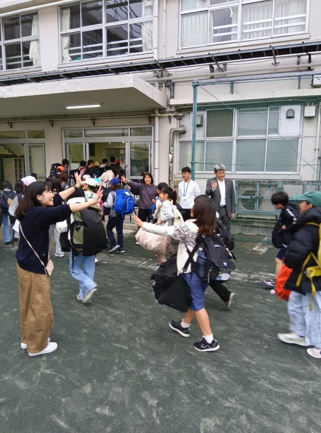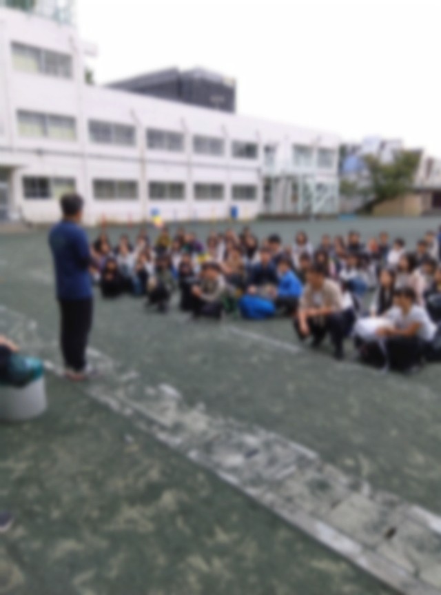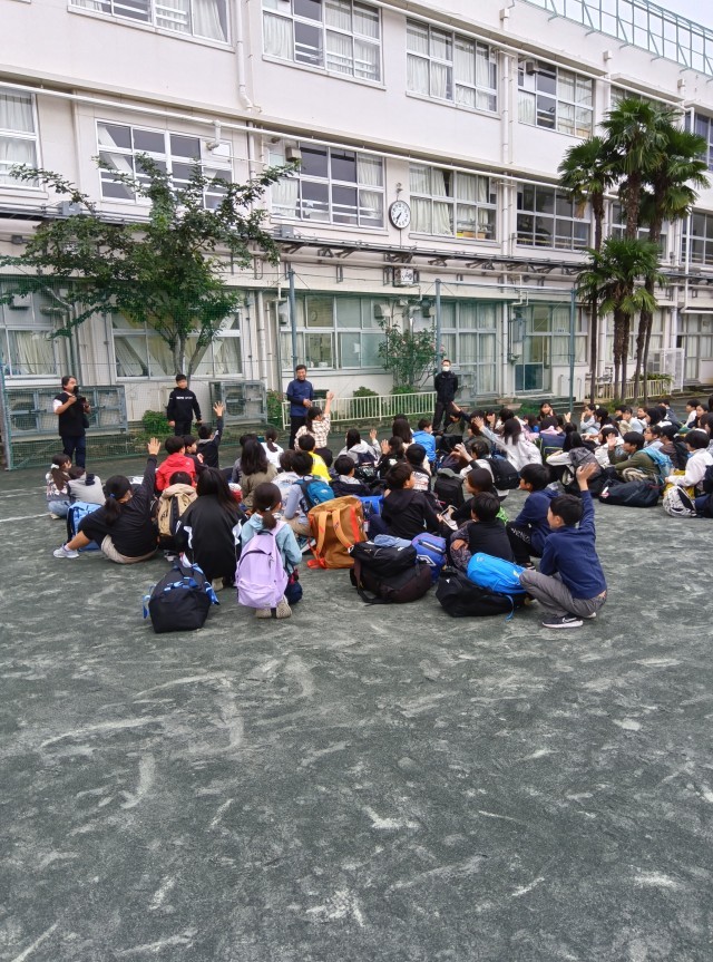 昨夜から降っていた雨もやみ、無事に校庭で出発式を行うことができました。