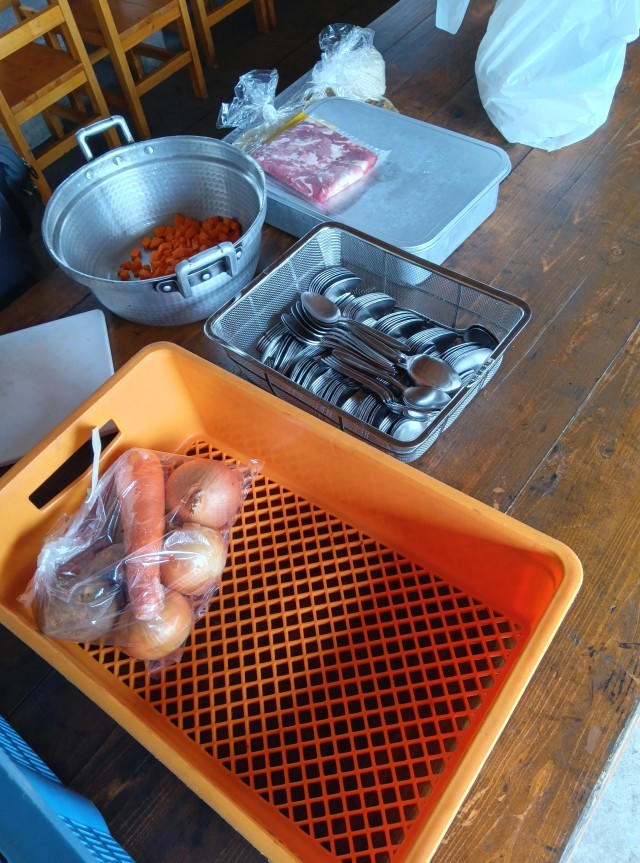 補助員さんが、飯盒炊爨の準備をしてくださいました。