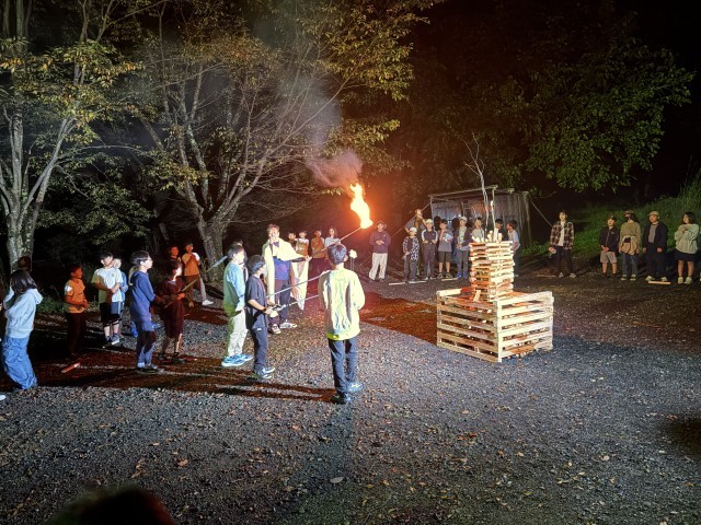 初日の締めくくりでは、キャンプファイヤーを行いました。